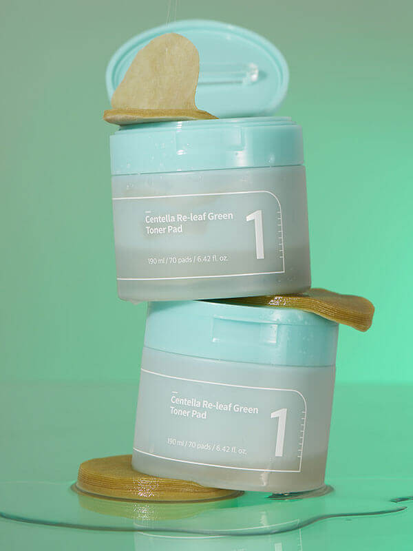 numbuzin No.1 Centella Re-Leaf Green Toner Pad - the toner pads infused with a gentle toner formulated with heartleaf, cica and licorice root extract to calm and soothe skin, replenishing skin's moisture barrier.