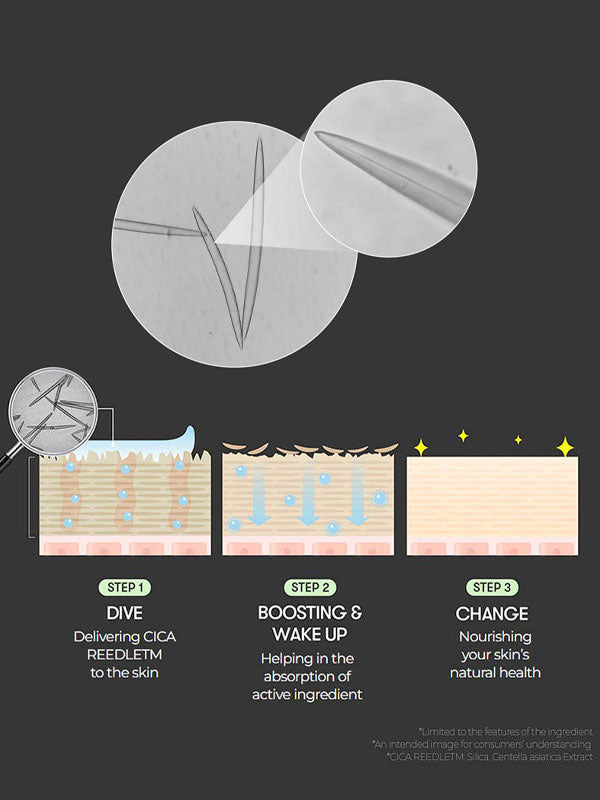 - Cica Reedle™ Technology: Micro-needles help to boost the absorption of nutrients, improving skin texture and reducing the appearance of pores.