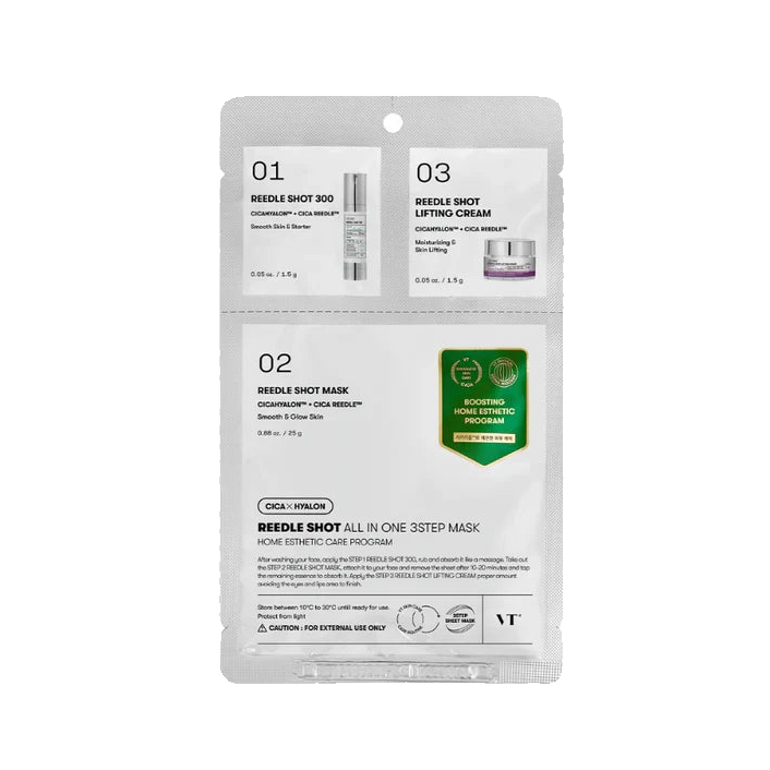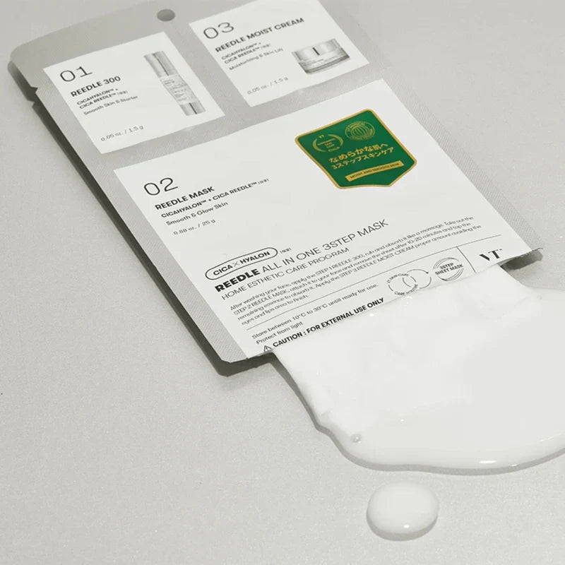 VT Reedle Shot All In One 3 Step Mask is a 3-step mask that helps to keep your skin smooth and glow.